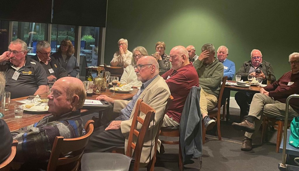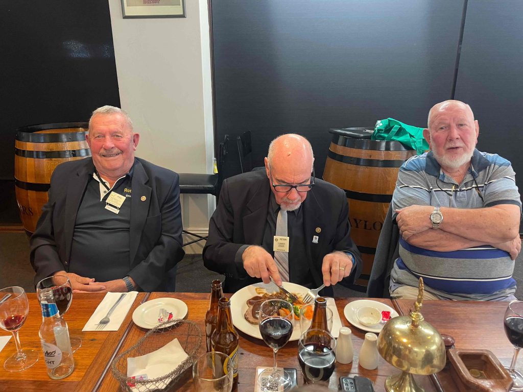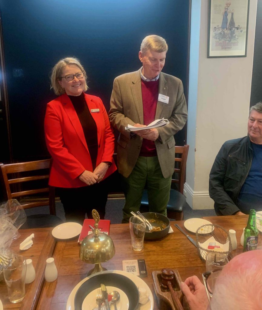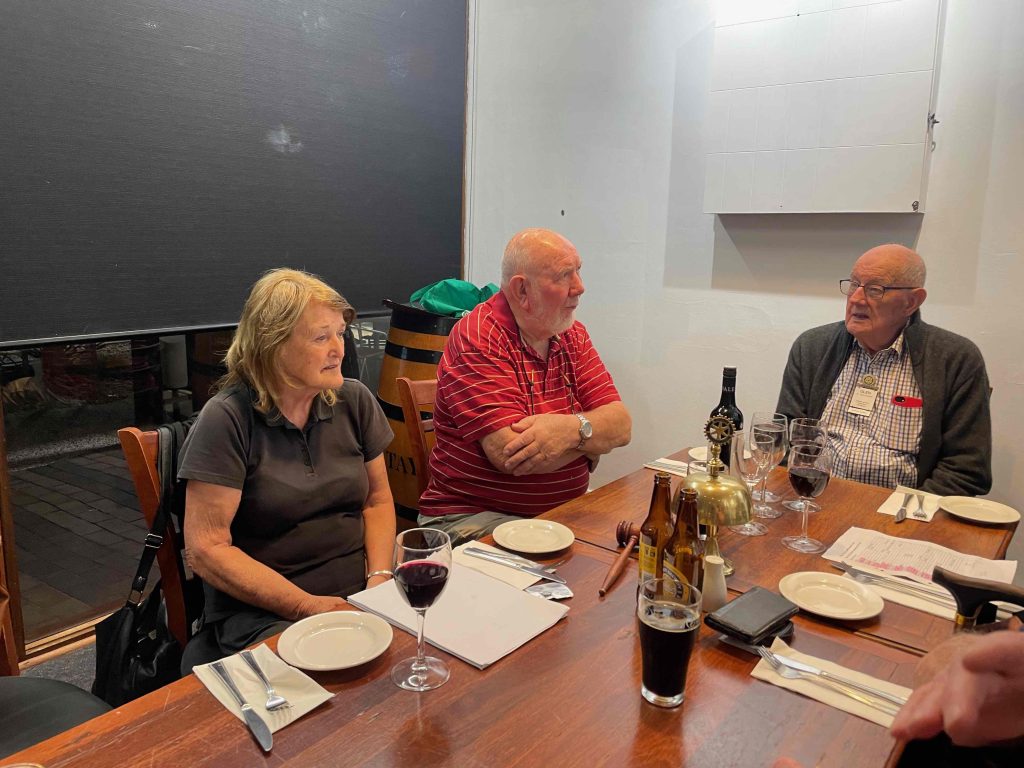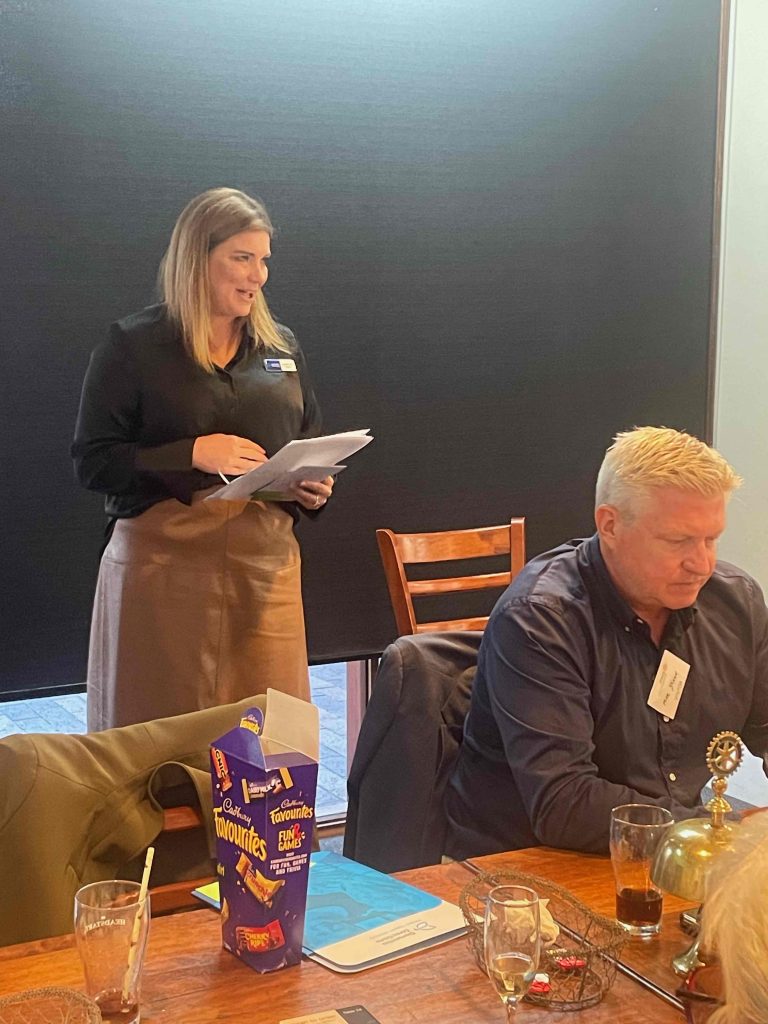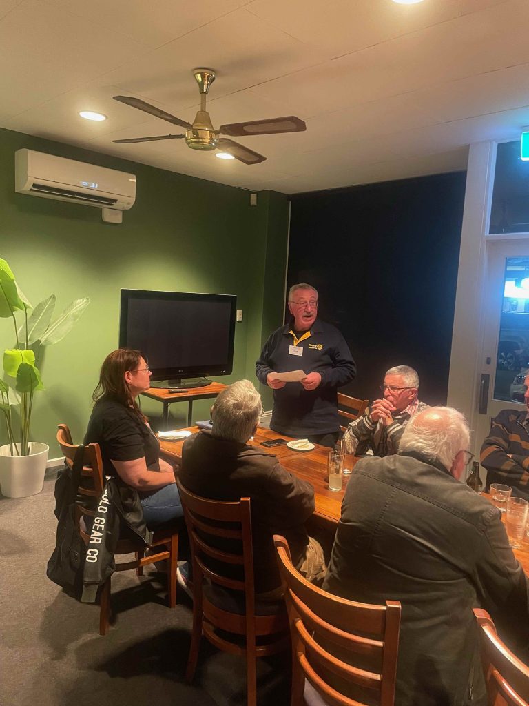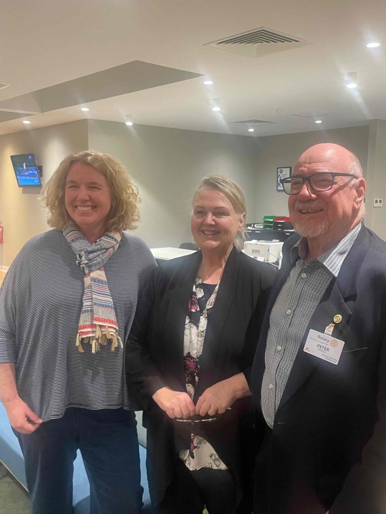 President Peter Francis who welcomed members and guest speakers Jacquie Milne and Sarah Hateley. He welcomed back Ken and thanked Bob and his team for their marathon efforts with our flagship RYDA program this year. Peter also thanked Stuart for attending the reorganisation meeting with him on Sunday.
