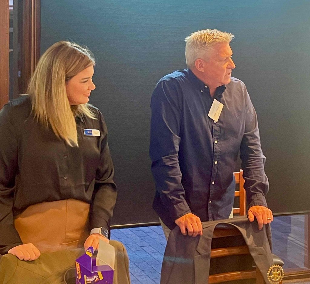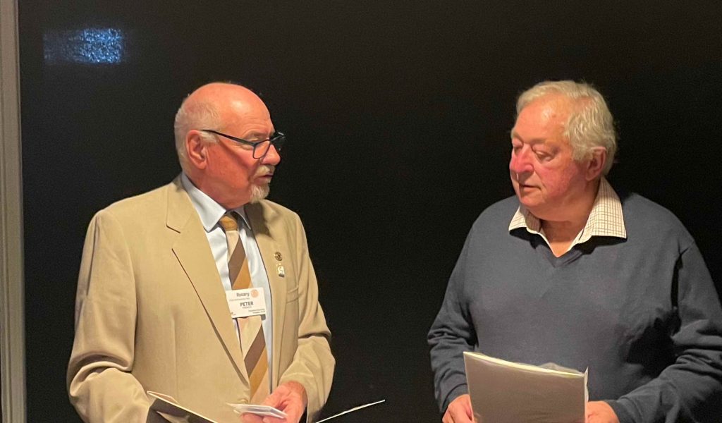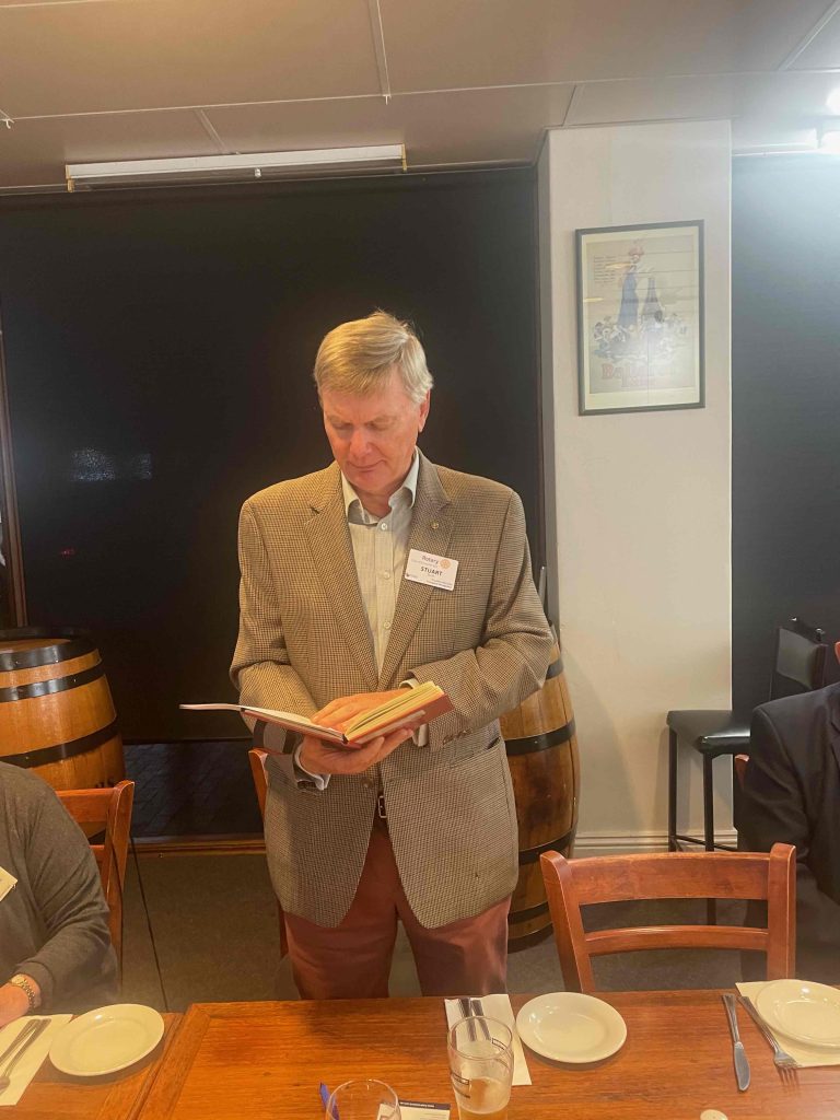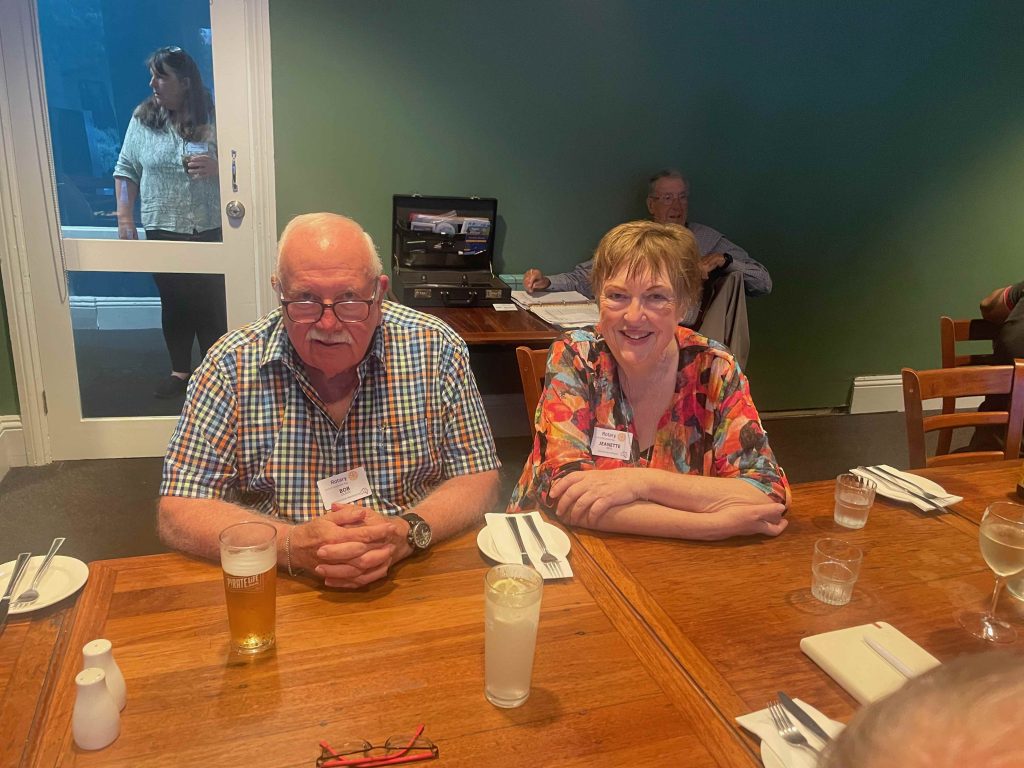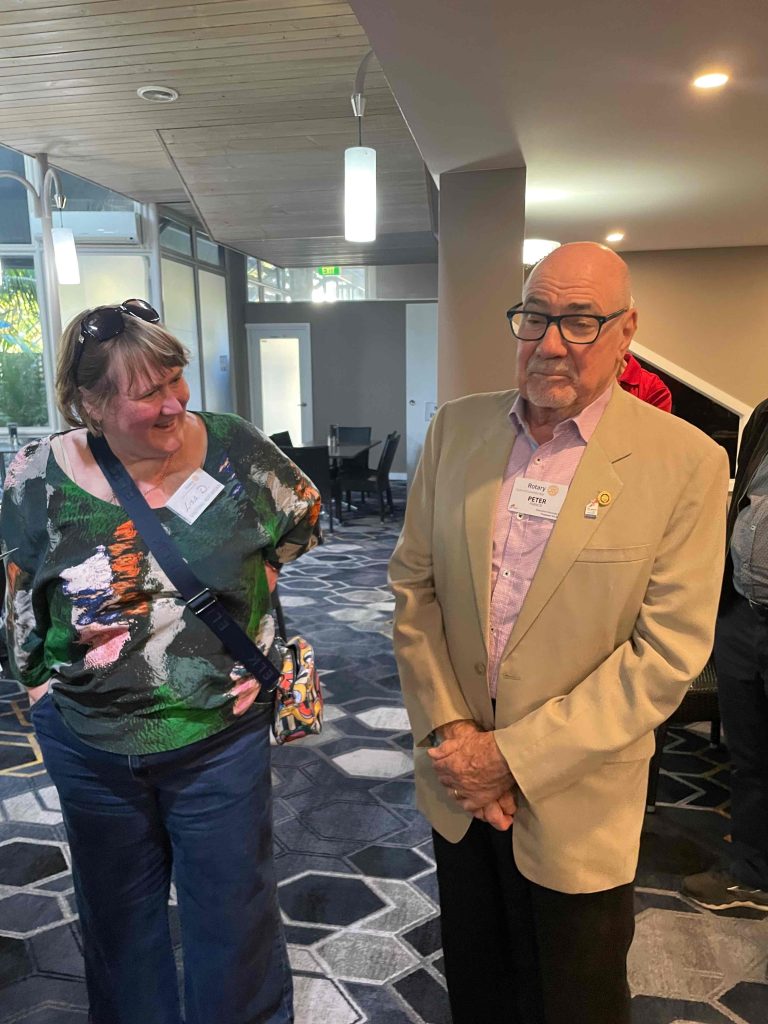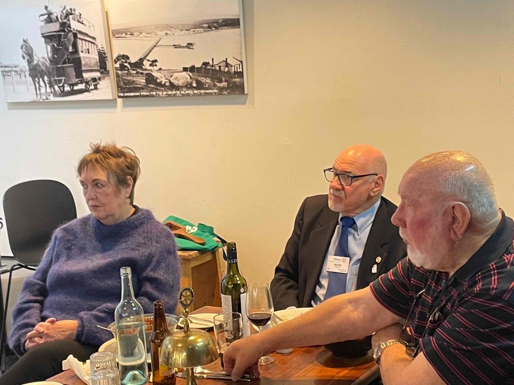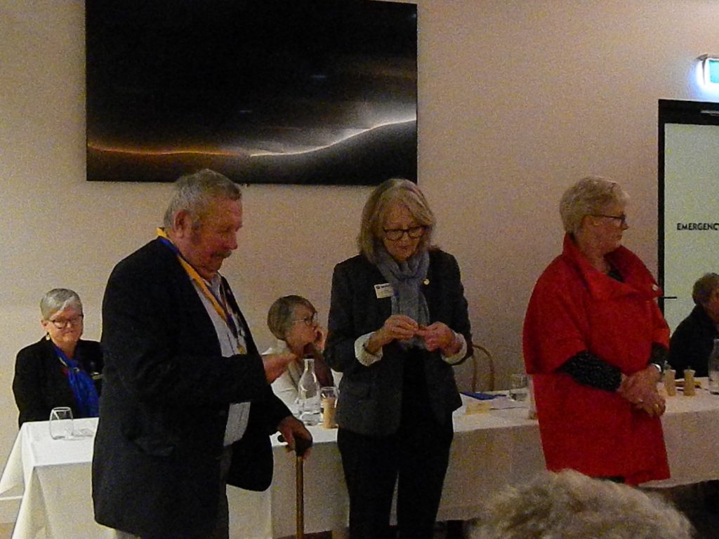 President Peter Francis who welcomed members and guest speakers Jacquie Milne and Sarah Hateley. He welcomed back Ken and thanked Bob and his team for their marathon efforts with our flagship RYDA program this year. Peter also thanked Stuart for attending the reorganisation meeting with him on Sunday.