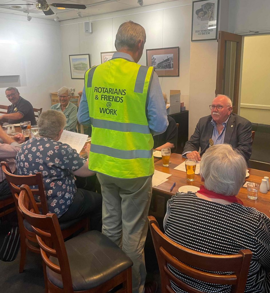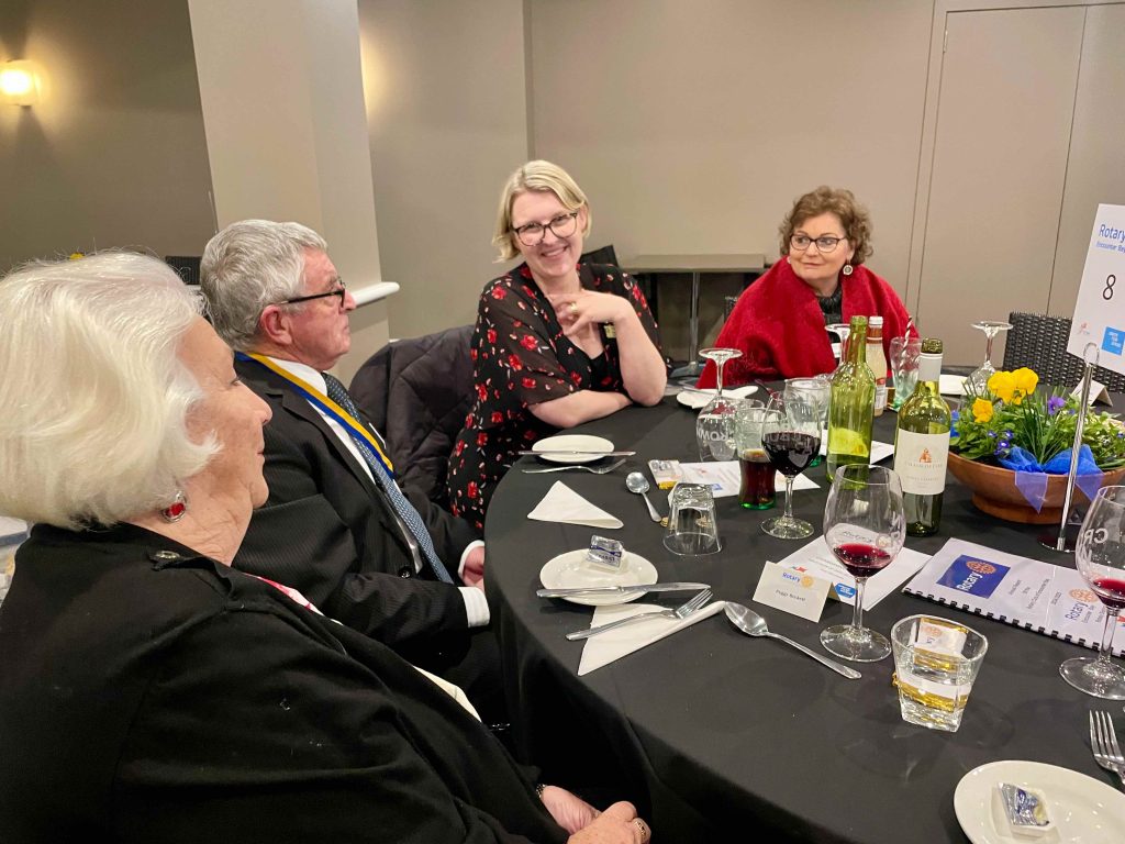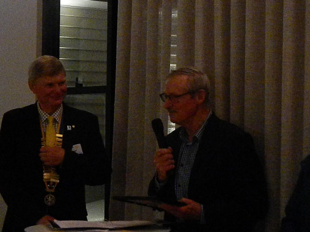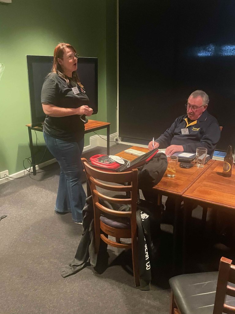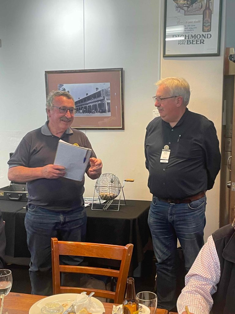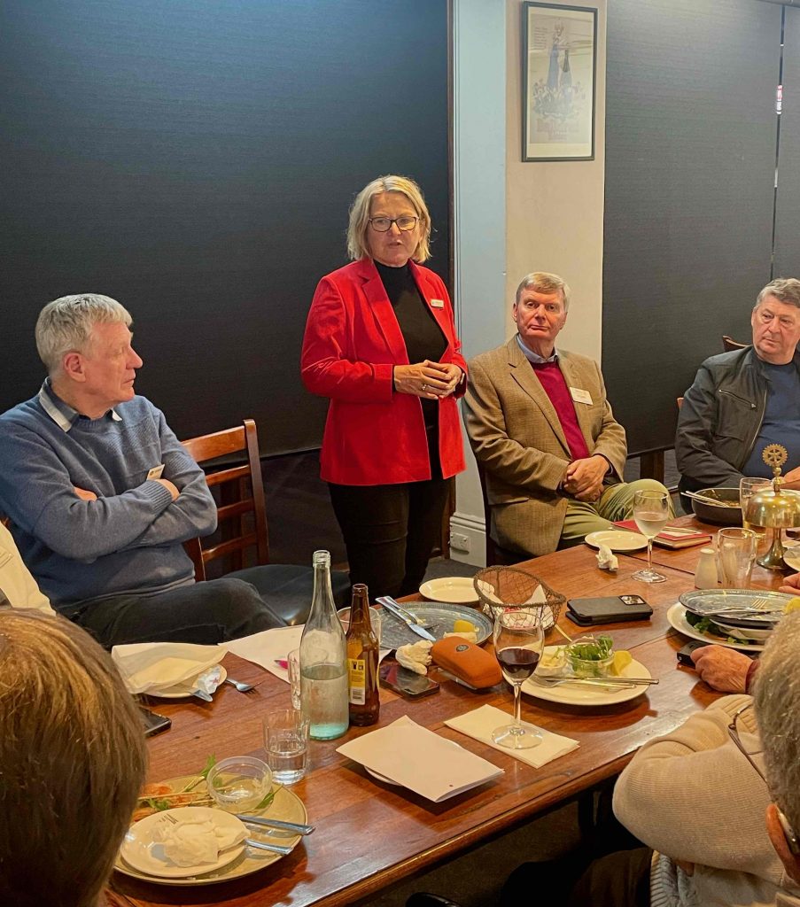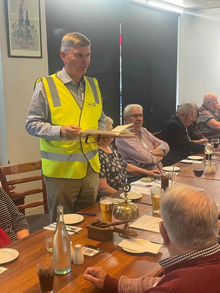 President Peter Francis who welcomed members and guest speakers Jacquie Milne and Sarah Hateley. He welcomed back Ken and thanked Bob and his team for their marathon efforts with our flagship RYDA program this year. Peter also thanked Stuart for attending the reorganisation meeting with him on Sunday.