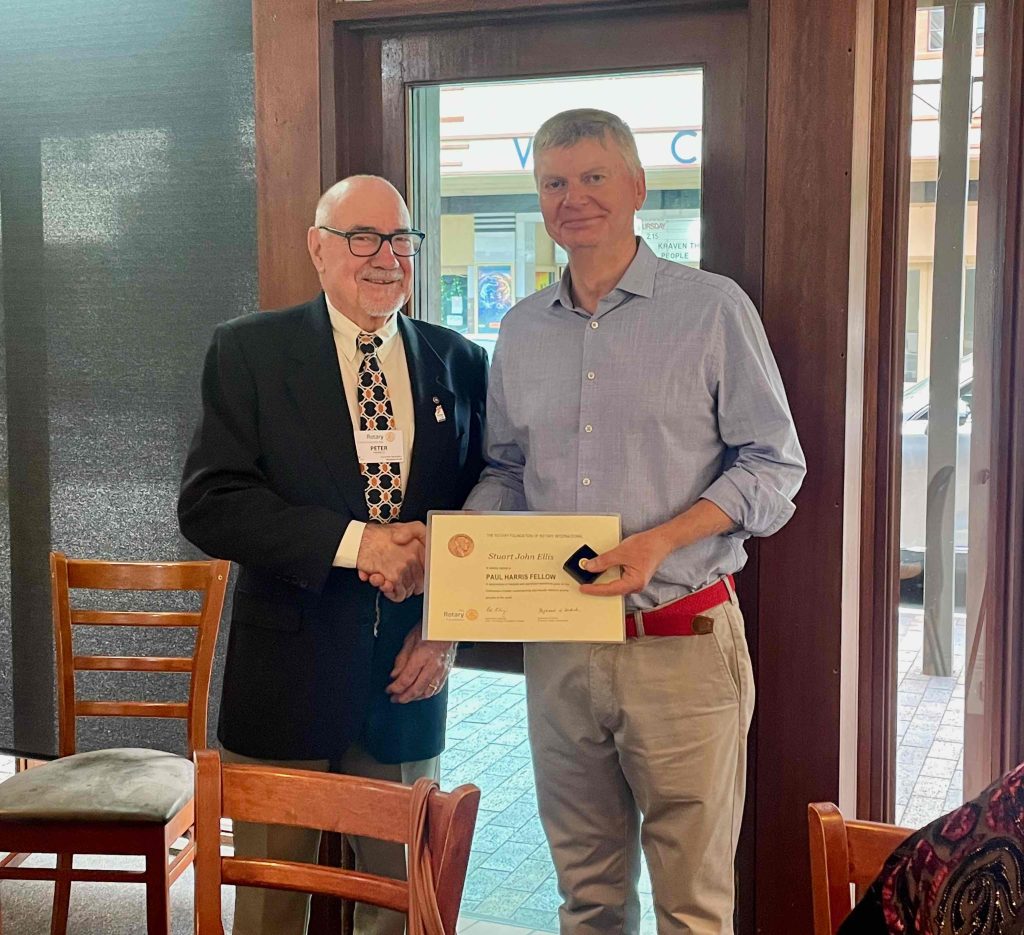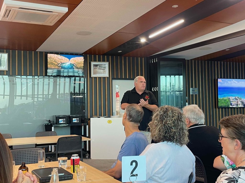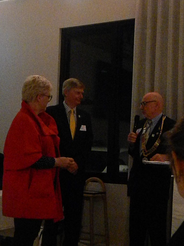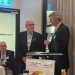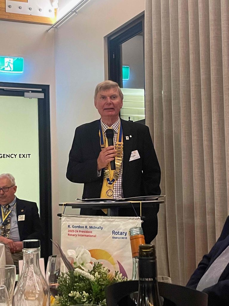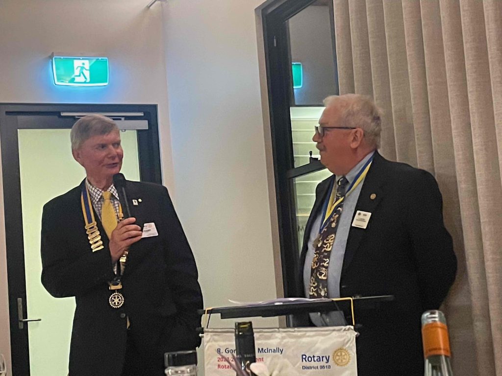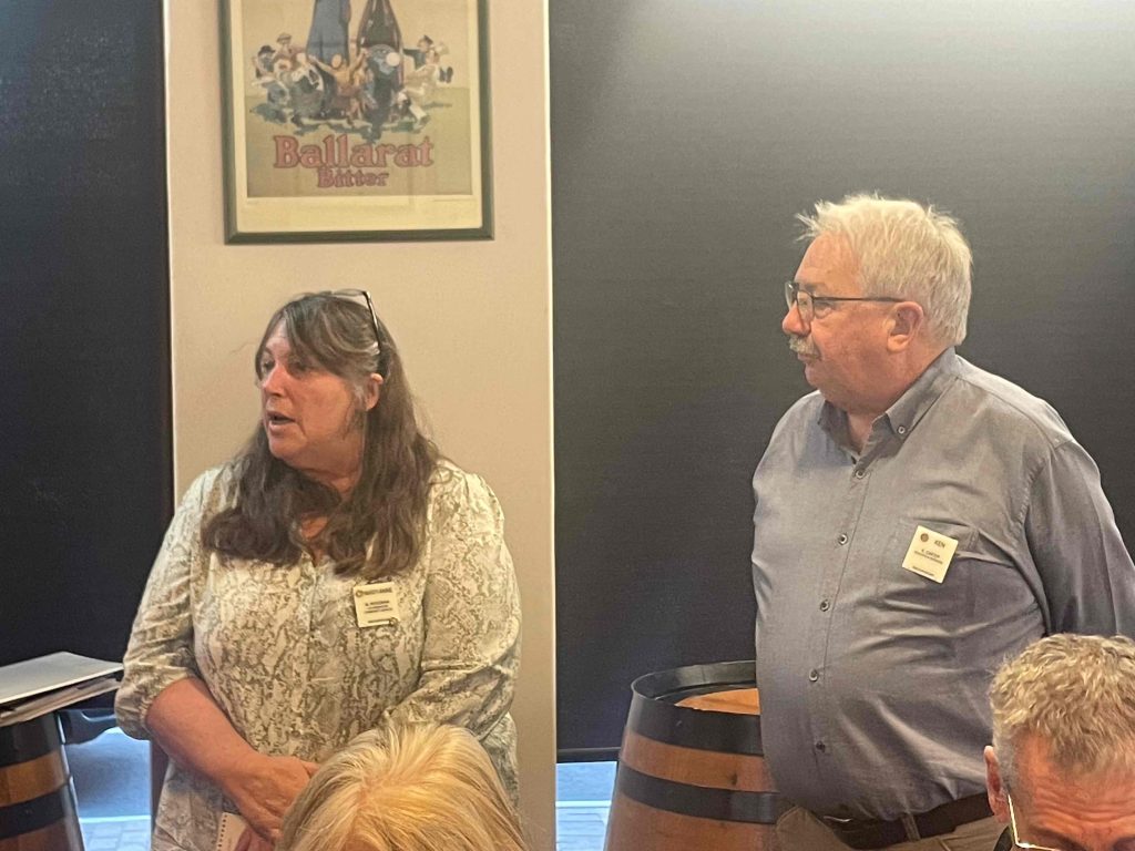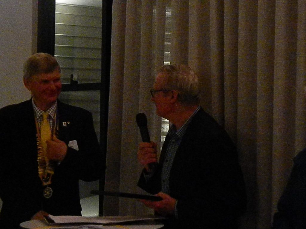 President Peter Francis who welcomed members and guest speakers Jacquie Milne and Sarah Hateley. He welcomed back Ken and thanked Bob and his team for their marathon efforts with our flagship RYDA program this year. Peter also thanked Stuart for attending the reorganisation meeting with him on Sunday.