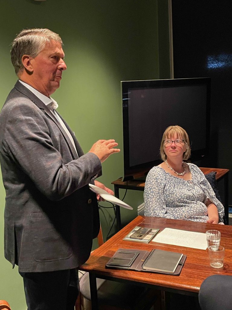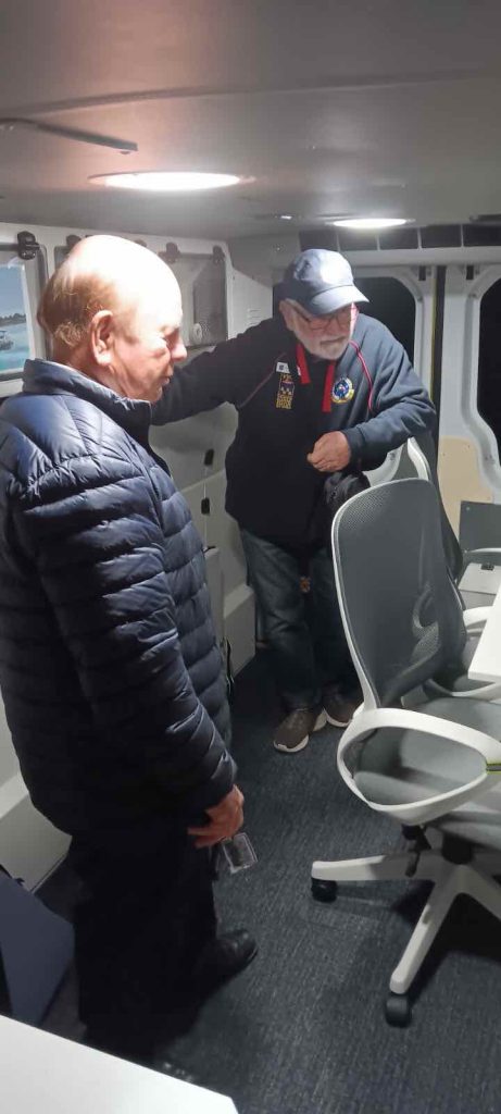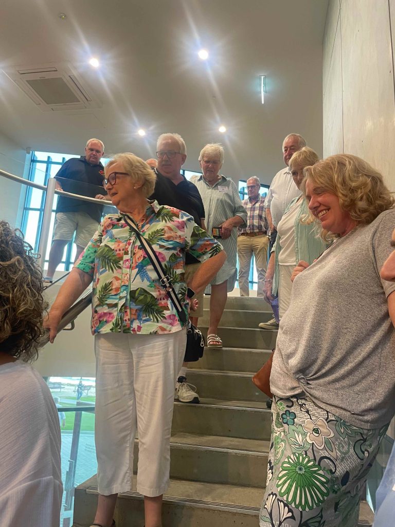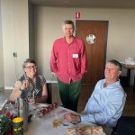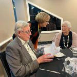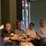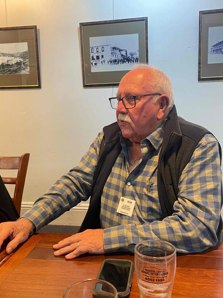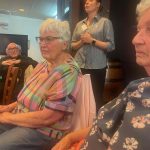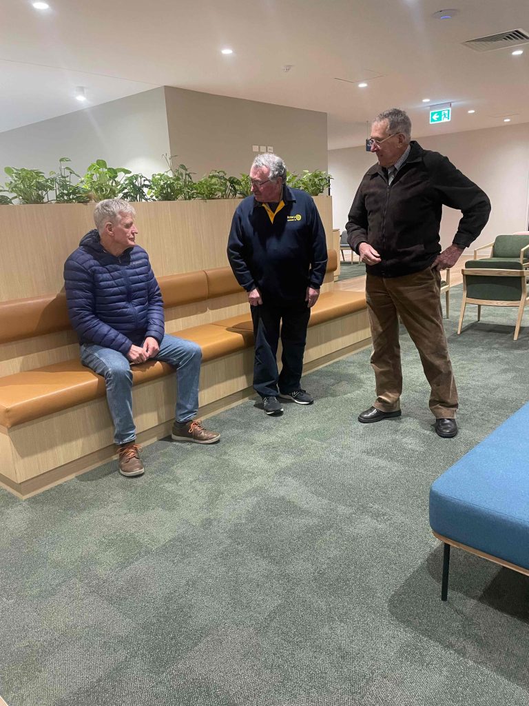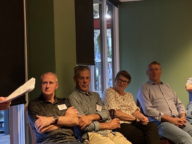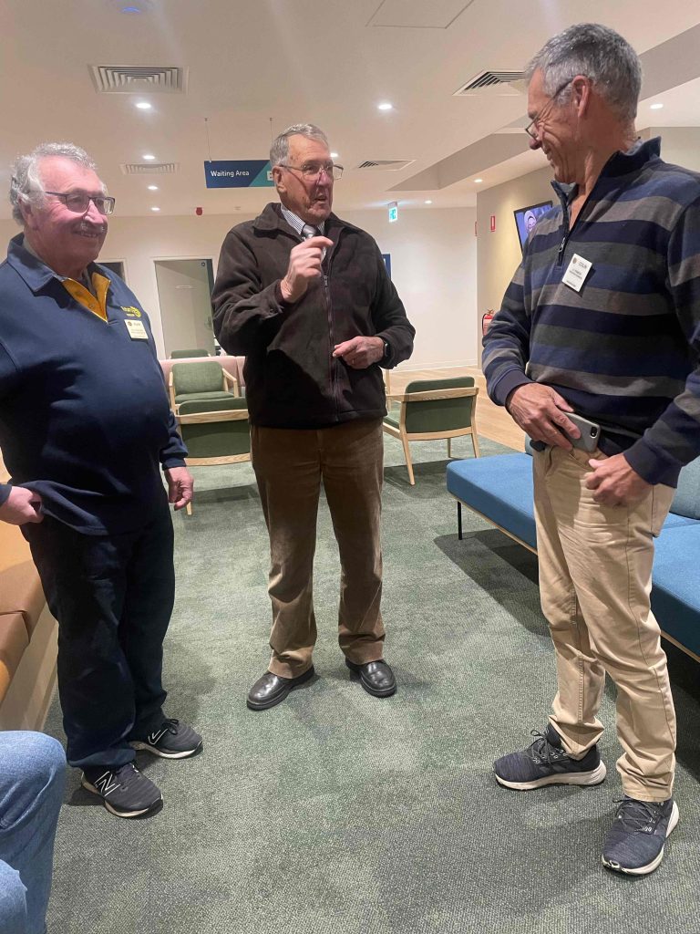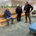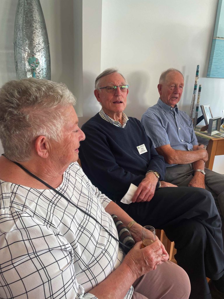 Sue Morisset with Ken Carter (at rear) and Alan Kluske listening to the interview sitting in the foreground.