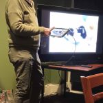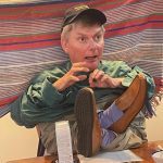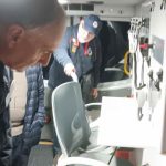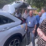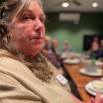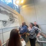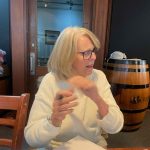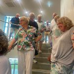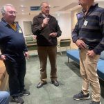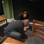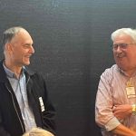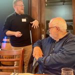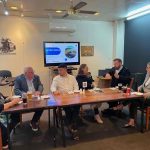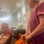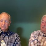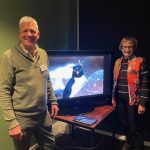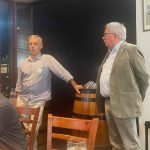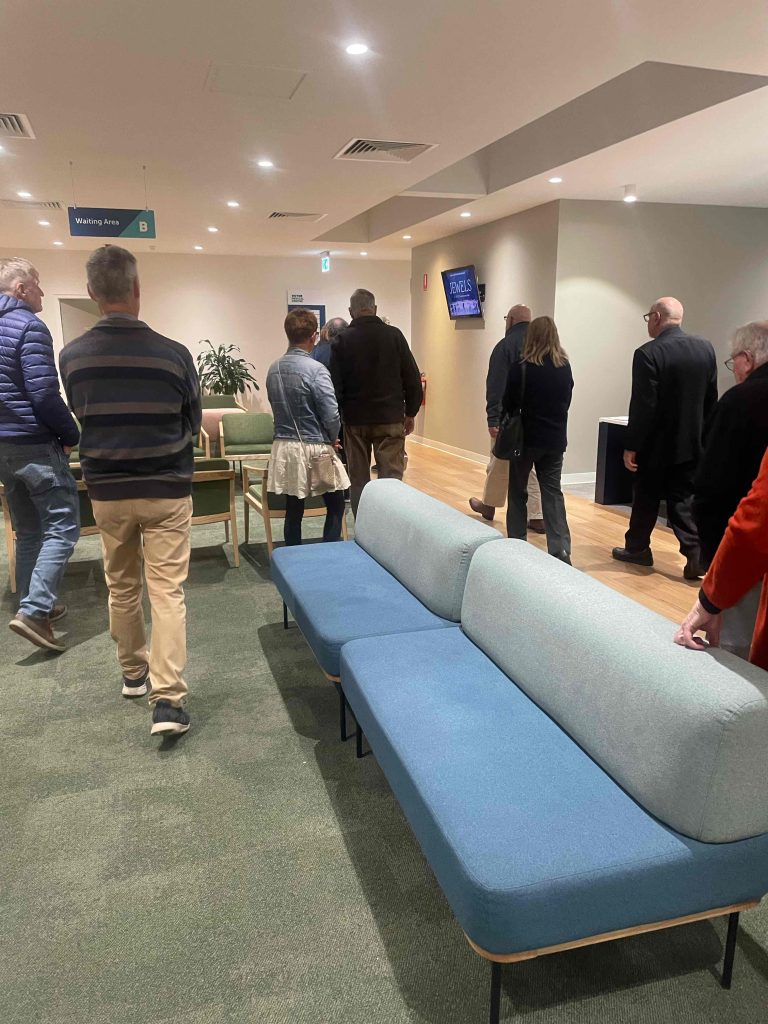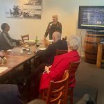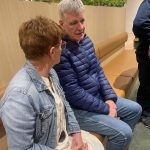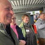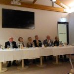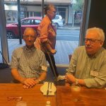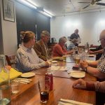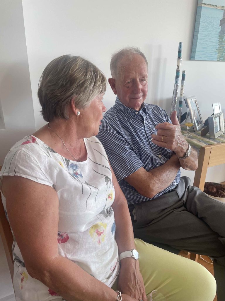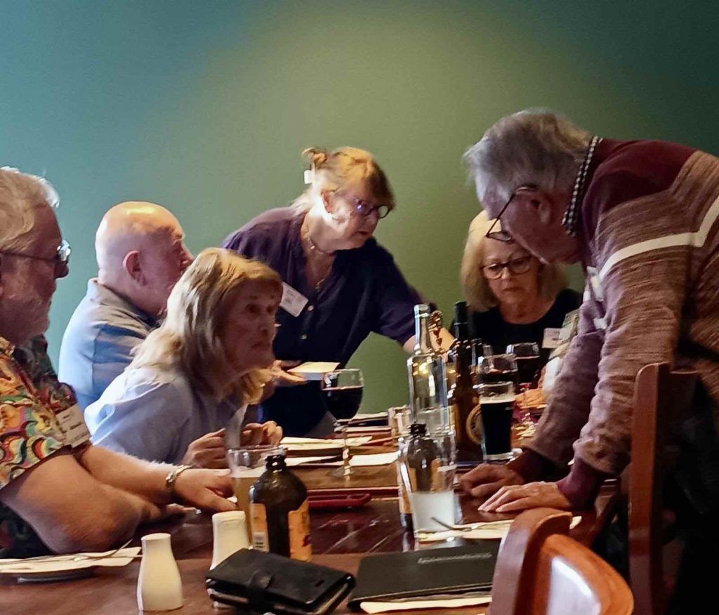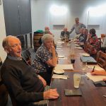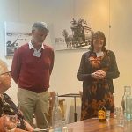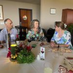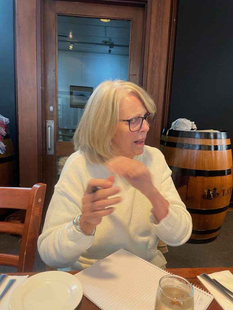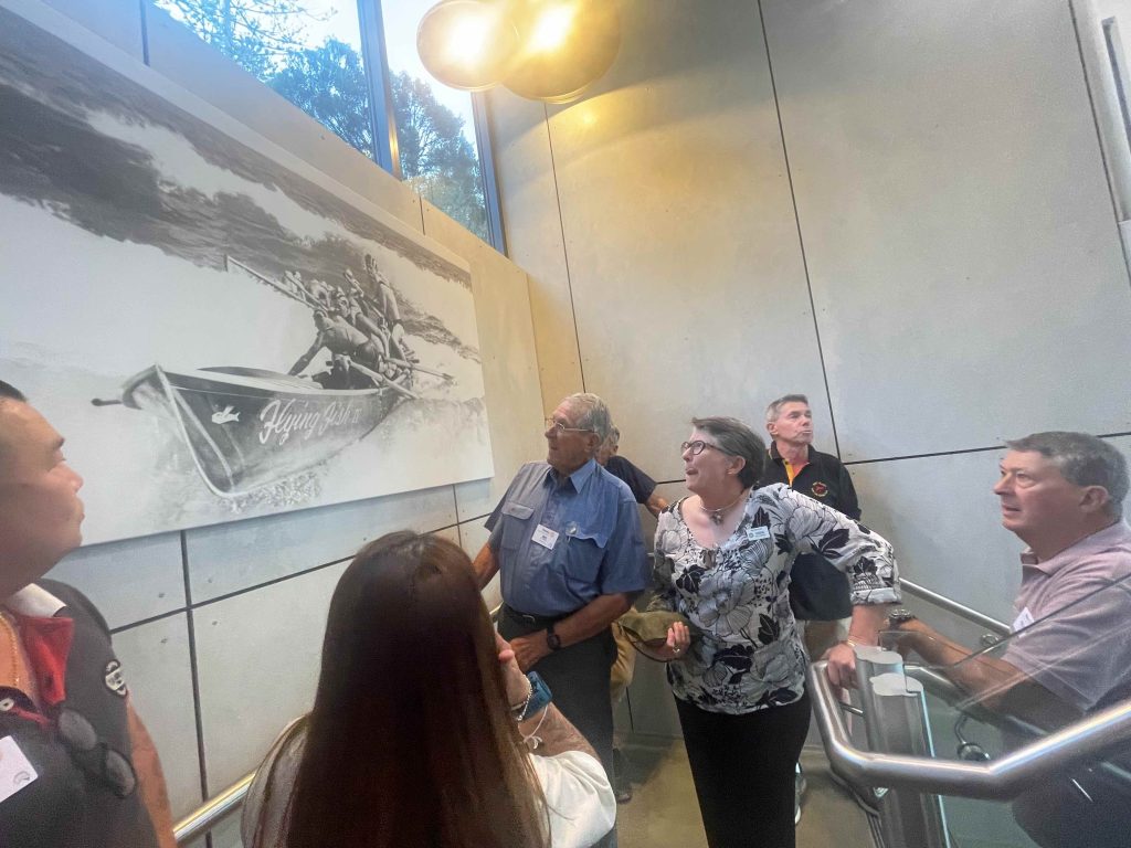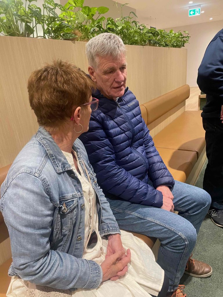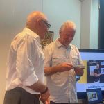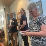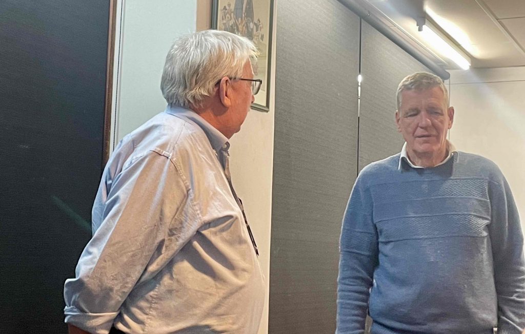 Sue Morisset with Ken Carter (at rear) and Alan Kluske listening to the interview sitting in the foreground.