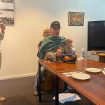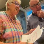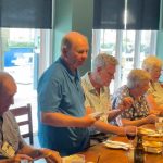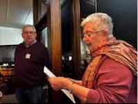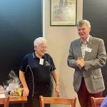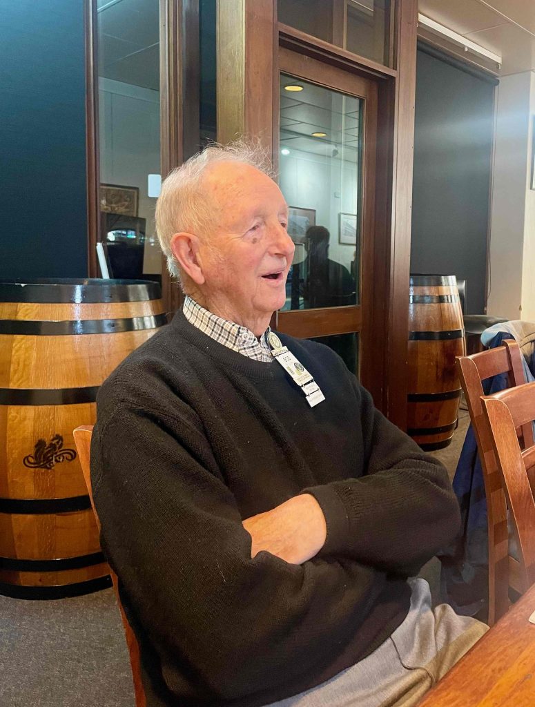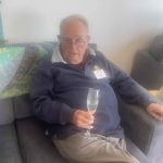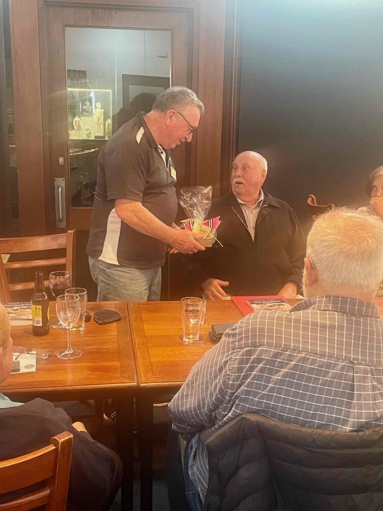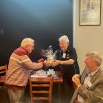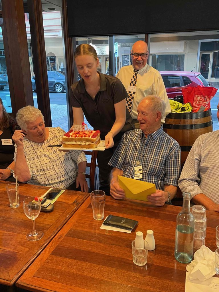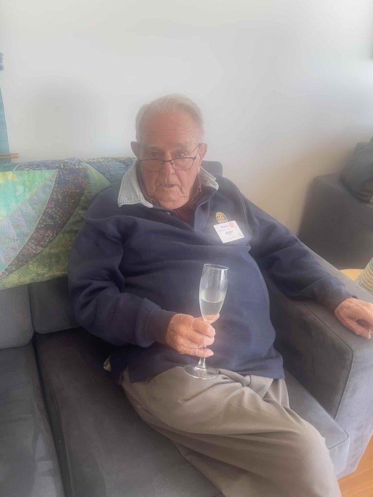 Cherilyn, Pres Peter congratulated Bob Hall on his 90th birthday and presented him with a card and bottle of champagne