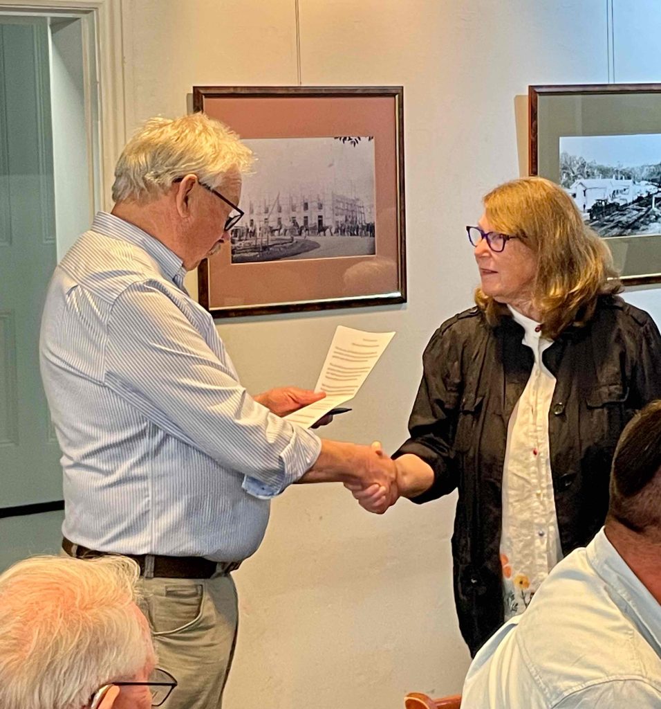 In thanking Merilyn, Chairman Barry gave her a small gift in appreciation of her giving up her time to speak to us,