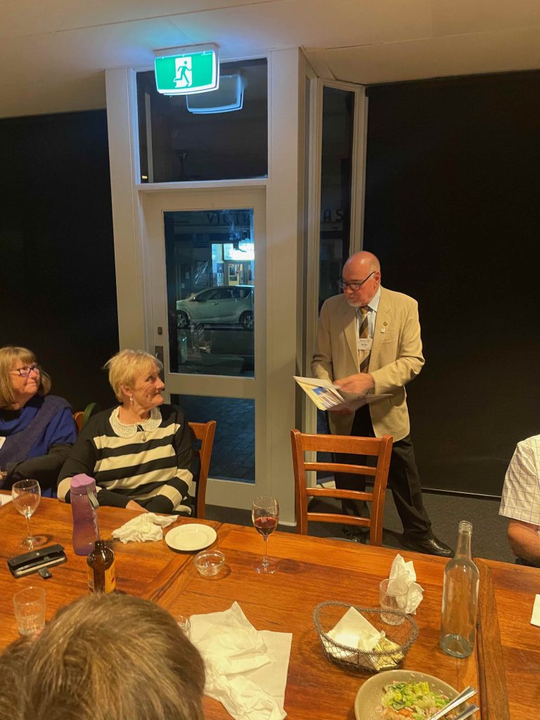 President Stuart commenced the meeting by welcoming members and guests, including Guest Speaker Merilyn Russell, Rotary District 9510 Interplast District Chair.