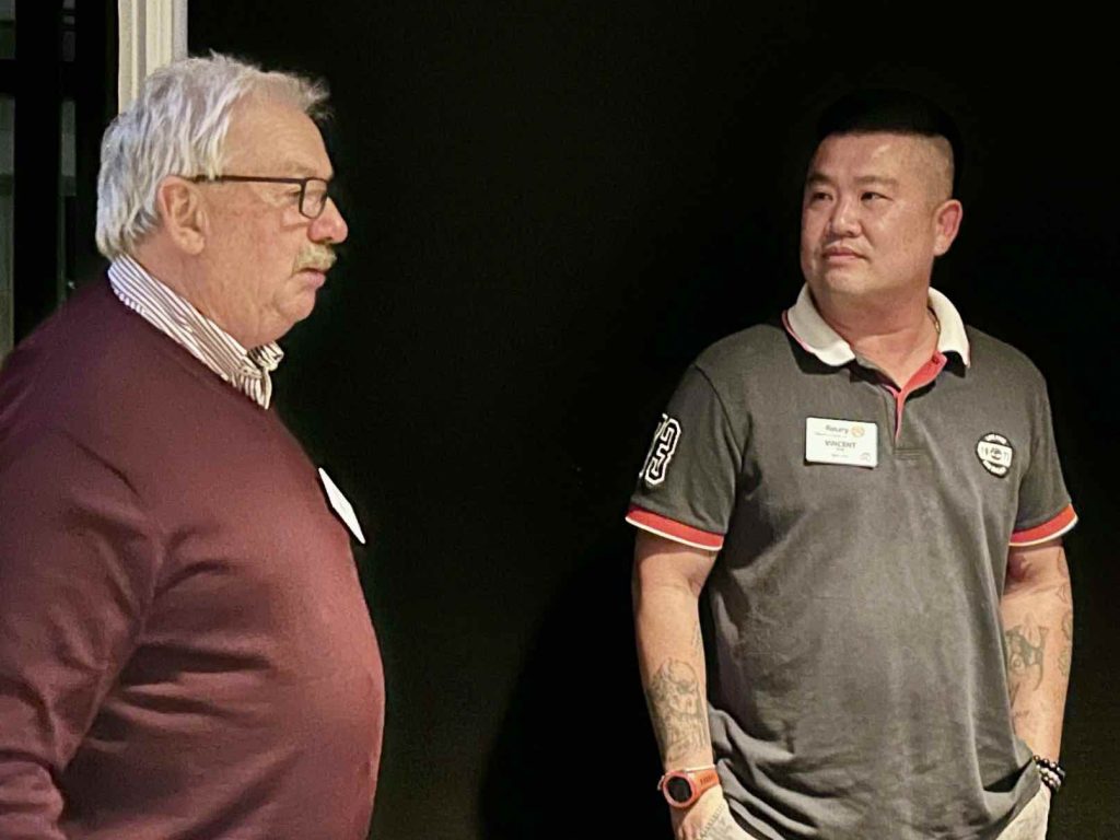 President Peter introduced himself, asked for introductions around the tables, and welcomed the fortyseven members and guests present for this special meeting focussing on Ken and Kathy’s recent trip to China for their son’s wedding.
