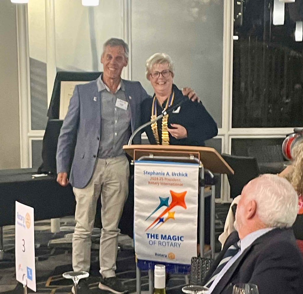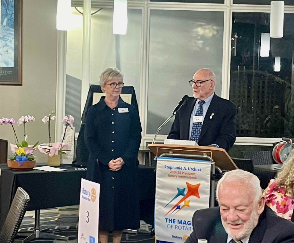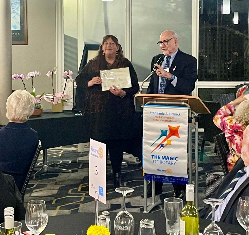 President Sue advised the Club that Bob Oliver had been awarded a Paul Harris Fellow Second Sapphire for being a Centurion donor to the Rotary Foundation for many years.